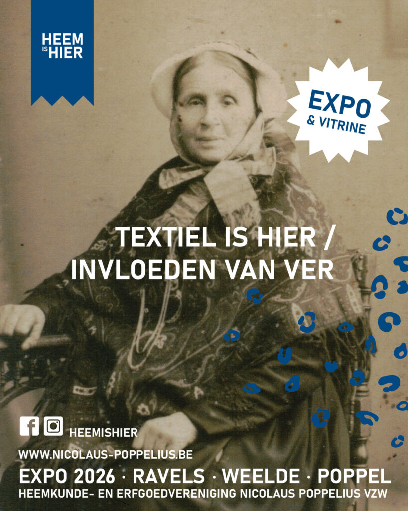 – We openen ons museum en het schoolhuis (archief) op erfgoeddag zondag 26 maart van 14u tot 17u. Je kan dan de volledig nieuwe tentoonstelling op het gelijkvloers bewonderen: TEXTIEL IS HIER, INVLOEDEN VAN VER.